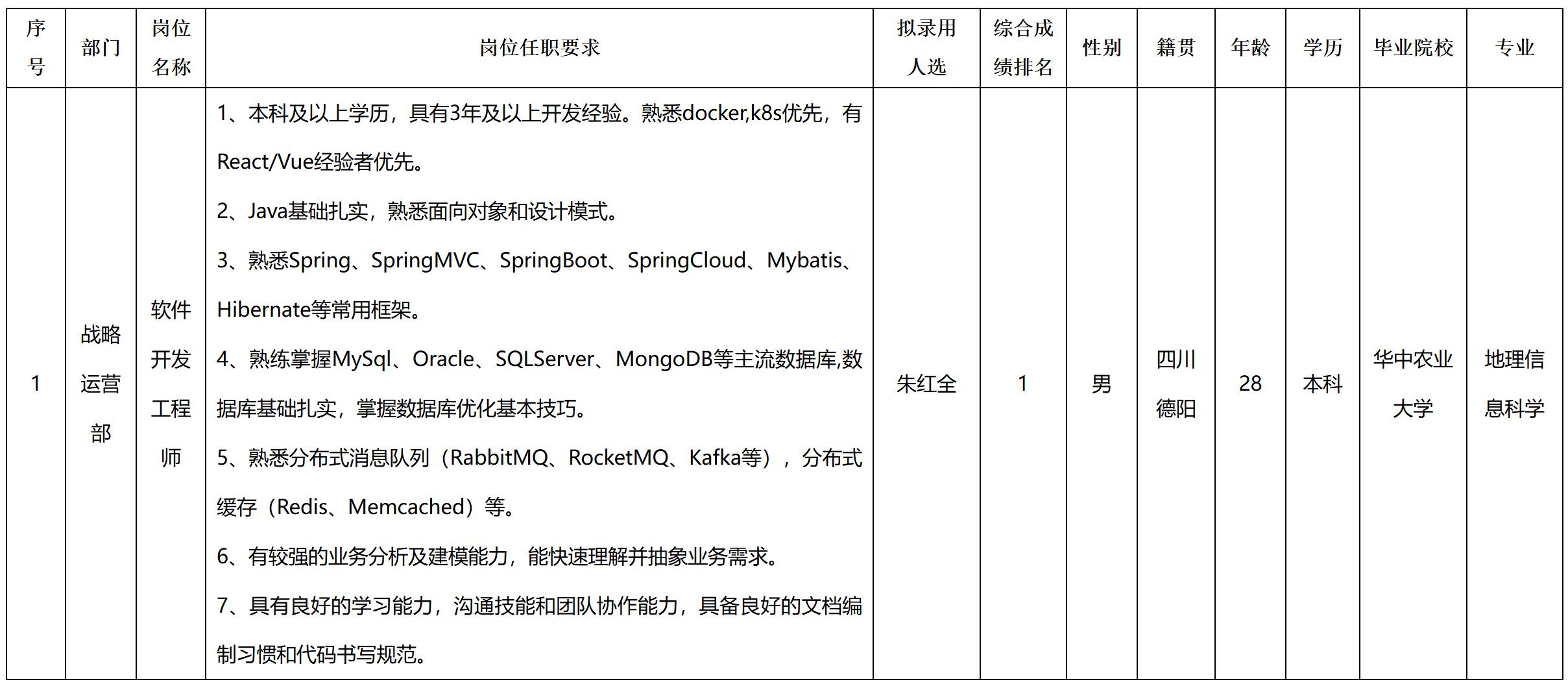 根據(jù)四川華豐科技股份有限公司發(fā)布的招聘公告及招聘相關(guān)規(guī)定,經(jīng)面試等程序,擬錄用朱紅全同志到四川華豐科技股份有限公司工作,現(xiàn)予以公示,具體情況如下: