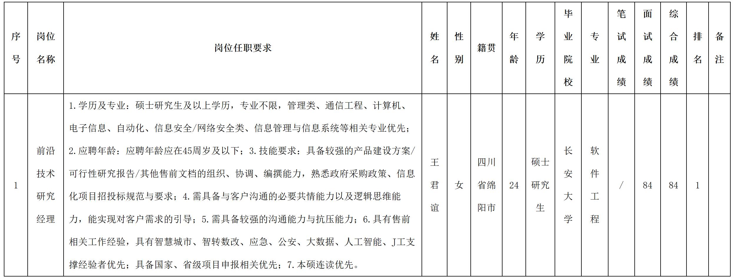 根據(jù)四川九洲投資控股集團(tuán)有限公司軟件與數(shù)據(jù)智能軍團(tuán)發(fā)布的招聘公告及招聘相關(guān)規(guī)定,經(jīng)筆試、面試等程序,現(xiàn)將筆試(面試)成績(jī)予以公示。