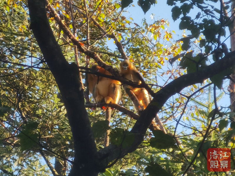 鏡頭中,幾只在陽光下泛著耀眼金光的川金絲猴蹲在不遠(yuǎn)處的枝丫上,觀察著巡護(hù)隊員們這群“陌生來客”。讓人忍俊不禁的是,一只調(diào)皮的川金絲猴跳上了一根枯木,“咔嚓”一聲,枯木應(yīng)聲折斷,川金絲猴四肢瞬間收緊,下一秒就穩(wěn)穩(wěn)攀附在旁邊的樹木主干上。遠(yuǎn)處,更多的川金絲猴正上演著“林間雜技”,像抹金光般劃過半空,于林間枝丫上穿梭。