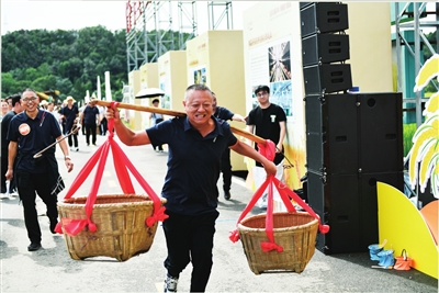 在梓潼田間地頭,一場妙趣橫生的農(nóng)耕趣事比賽熱烈開場。比賽中,最引人注目的當屬豐收大作戰(zhàn)接力賽了。在“粒粒皆辛苦”環(huán)節(jié),選手們需要用長筷子夾起豆子,放入指定的容器中??此坪唵蔚膭幼鳎瑓s需要高度的專注和耐心。接下來的“袋鼠運糧忙”環(huán)節(jié),選手們套上麻袋,變身活力“袋鼠”,在賽道上蹦蹦跳跳地前進,展現(xiàn)出頑強的拼搏精神。最后的“扁擔接力賽”中,選手們挑起裝滿糧食的扁擔,健步如飛地沖向終點,整個過程好玩又有趣。