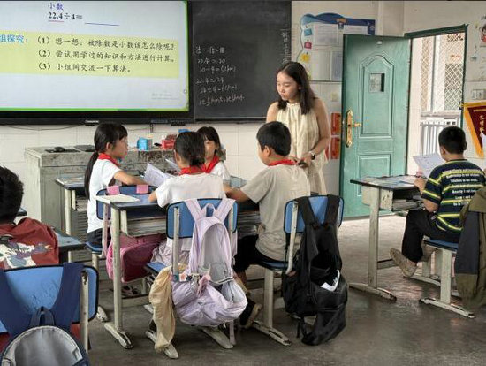 李老師五年級(jí)《小數(shù)的除法》教學(xué)則凸顯了對(duì)知識(shí)邏輯與學(xué)生差異的關(guān)注。教師以“整數(shù)除法算理”為鋪墊,通過(guò)“問(wèn)題導(dǎo)入—對(duì)比探究—分步拆解”的清晰思路,精準(zhǔn)突破“商的小數(shù)點(diǎn)與被除數(shù)小數(shù)點(diǎn)對(duì)齊”這一核心難點(diǎn)。同時(shí),課堂設(shè)計(jì)了基礎(chǔ)計(jì)算、實(shí)際應(yīng)用題等分層練習(xí),兼顧不同學(xué)習(xí)水平學(xué)生;更通過(guò)小組討論引導(dǎo)學(xué)生自主總結(jié)算法,在掌握知識(shí)的同時(shí),有效培養(yǎng)了邏輯思維與合作能力。小組討論氣氛熱烈,小組代表匯報(bào)發(fā)言中,小組長(zhǎng)聲音清晰、洪亮,展現(xiàn)出良好的學(xué)生們合作意識(shí)與問(wèn)題解決能力。