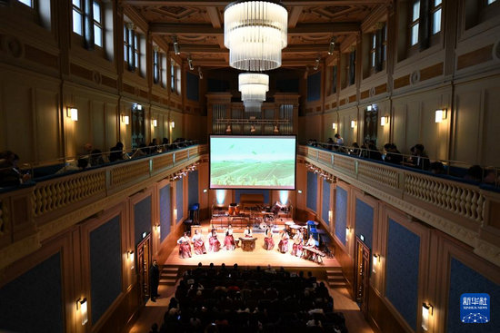 9月23日,在瑞士日內(nèi)瓦,表演者在2025年“天涯共此時(shí)——中秋節(jié)”文藝晚會(huì)上演奏音樂。