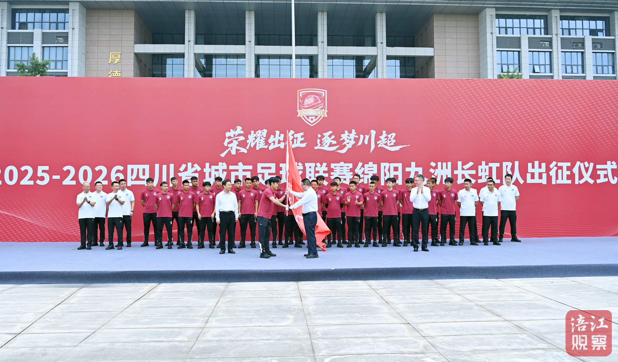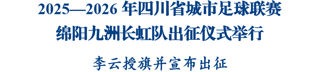 綿陽(yáng)新聞網(wǎng)訊 9月26日,2025—2026年四川省城市足球聯(lián)賽綿陽(yáng)九洲長(zhǎng)虹隊(duì)出征儀式在市委黨校舉行,為即將奔赴賽場(chǎng)的全體教練員、運(yùn)動(dòng)員加油鼓勁、擂鼓壯行。市委副書(shū)記、市長(zhǎng)李云向綿陽(yáng)九洲長(zhǎng)虹隊(duì)授旗并宣布出征。