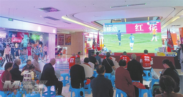 球迷聚在安州商超匯星廣場的大屏前觀賽