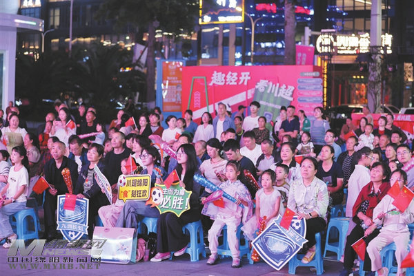 在經(jīng)開區(qū)城南vv街舉辦的開街活動中,將川超綿陽隊首場比賽轉(zhuǎn)播作為開街活動的重要節(jié)目,眾多群眾現(xiàn)場觀賽,為綿陽隊加油。經(jīng)開區(qū)經(jīng)發(fā)局工作人員羅成杰說,川超活動期間,商戶將依托川超活動,開展各類促消費活動,為川超加油助力,進(jìn)一步推動經(jīng)開區(qū)人氣聚集,商氣活躍,提升三江湖畔消費品牌。