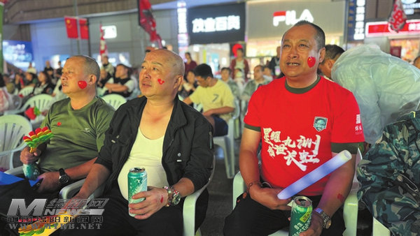 綿州記憶興達(dá)廣場設(shè)置的超大屏幕吸引了近百球迷觀賽