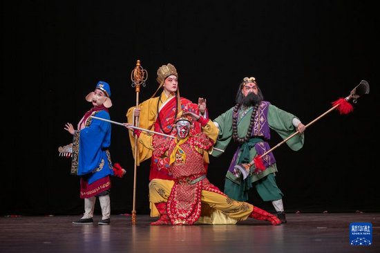 9月25日,在剛果(金)首都金沙薩,演員表演婺劇《三打白骨精》。