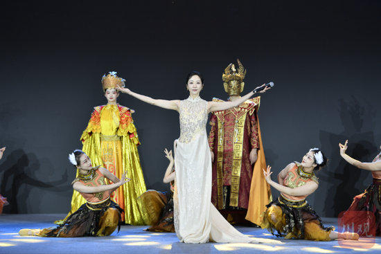 主論壇上的文藝表演,讓沉睡千年的古蜀文明在與當(dāng)代的對(duì)話中有了新表達(dá)。趙明 攝