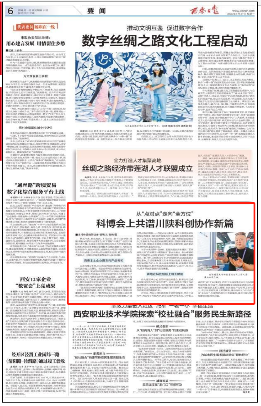 第十三屆中國(綿陽)科技城國際科技博覽會正如火如荼進行。9月29日,國內(nèi)多家媒體紛紛對科博會進行集中報道,其中《科技日報》要聞版 、《西安日報》要聞版、《四川經(jīng)濟日報》頭版共同聚焦這場科技盛宴。