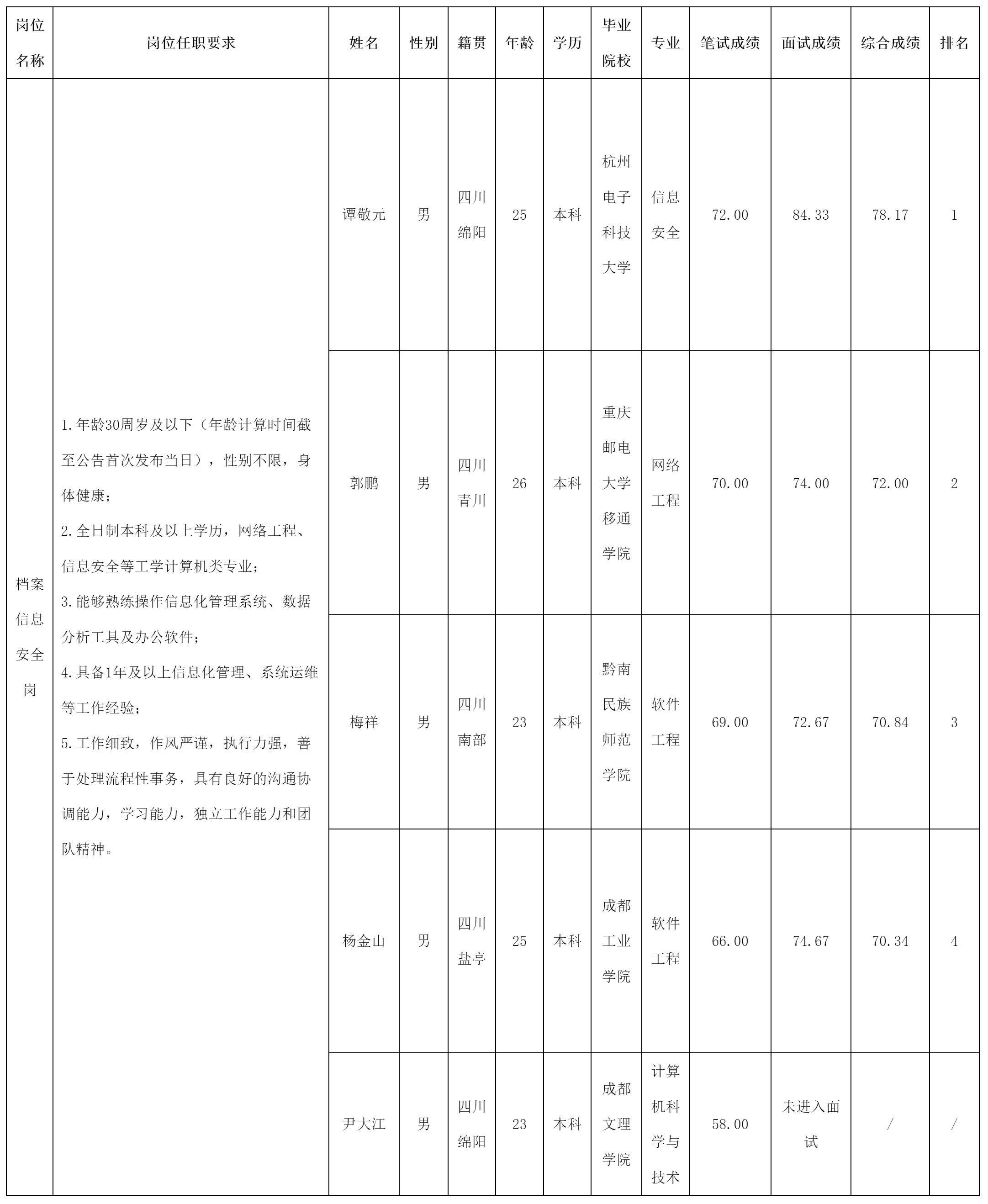 根據(jù)綿陽市綿投商業(yè)運(yùn)營管理有限責(zé)任公司發(fā)布的招聘公告及招聘相關(guān)規(guī)定,經(jīng)筆試、面試等程序,現(xiàn)將筆試(面試)成績予以公示。