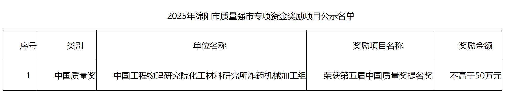 附件:2025年綿陽市質(zhì)量強(qiáng)市建設(shè)專項(xiàng)資金獎(jiǎng)勵(lì)項(xiàng)目公示名單