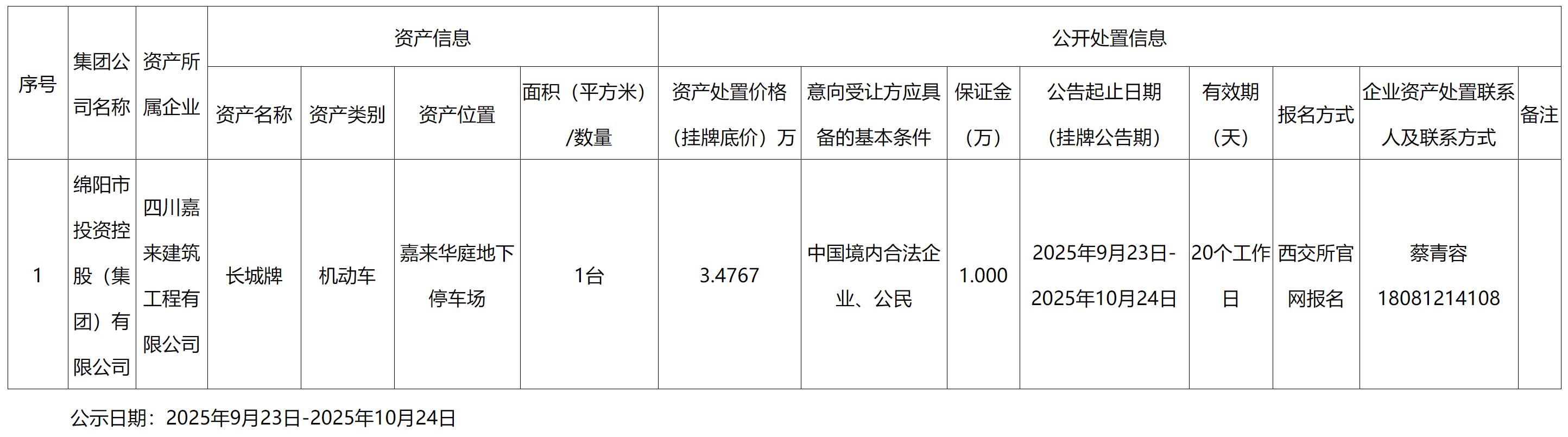 四川嘉來建筑工程有限公司資產(chǎn)處置公告