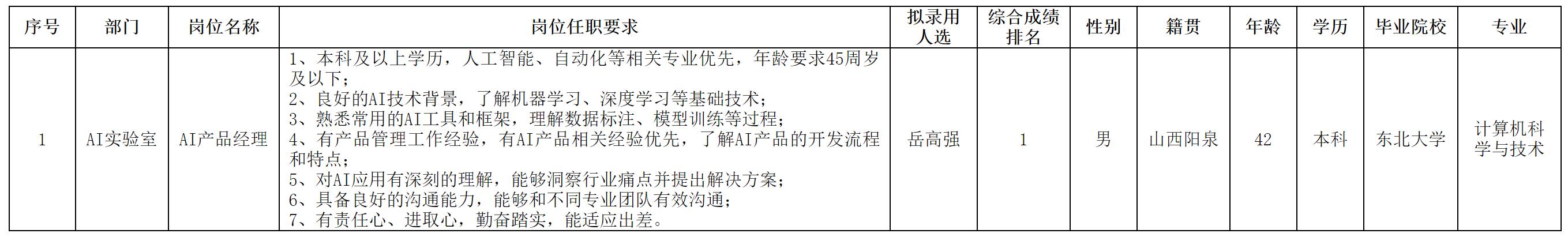根據(jù)四川長虹虹微科技有限公司發(fā)布的招聘公告及招聘相關(guān)規(guī)定,經(jīng)面試、考察等程序,擬錄用岳高強同志到四川長虹虹微科技有限公司工作,現(xiàn)予以公示,具體情況如下: