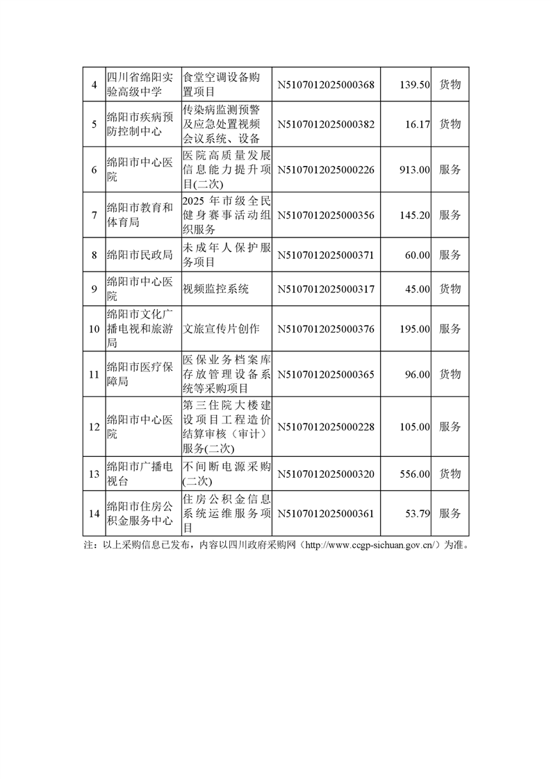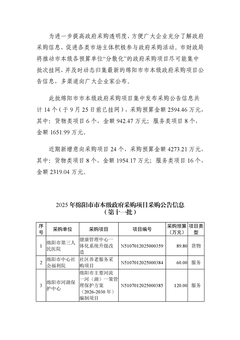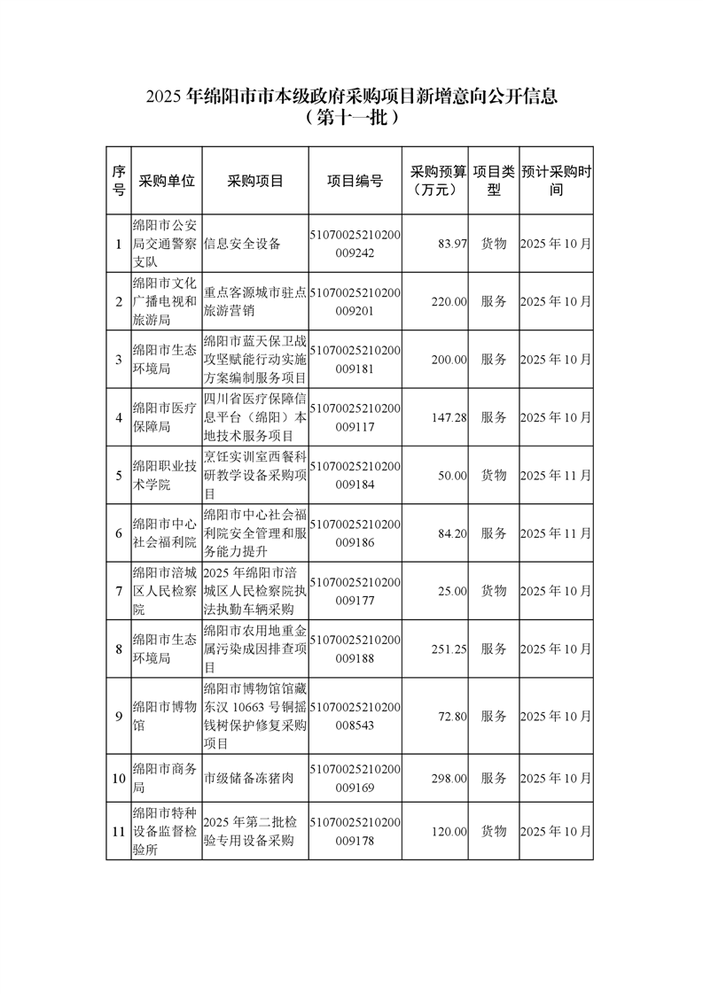 38個(gè)政府采購項(xiàng)目的“機(jī)會清單”出爐?。?025年第十一批)綿陽市市本級政府采購項(xiàng)目信息動態(tài)(2025年第十一波)