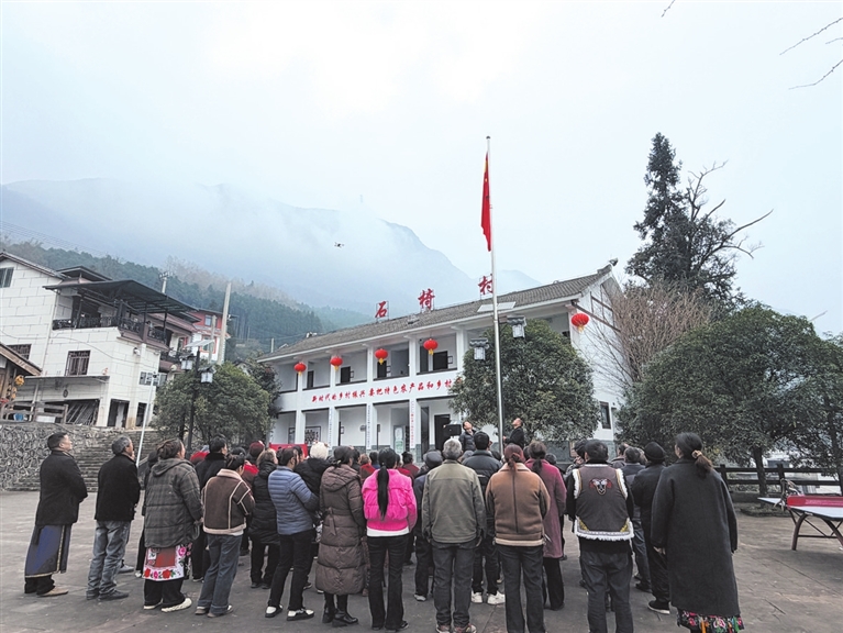 北川石椅村升國(guó)旗迎元旦。 記者 唐云峰 攝