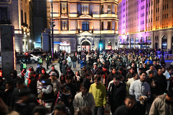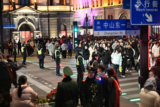 2025年12月31日晚,上海外灘區(qū)域迎來跨年迎新的大客流。新華社發(fā)