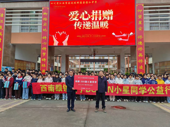 此次捐贈活動中,江西商會西南眼鏡有限公司為該校學(xué)子捐贈了200副價值五十萬元的保護(hù)視力眼鏡,同時為六名品學(xué)兼優(yōu)學(xué)生發(fā)放資助金每年2000元。