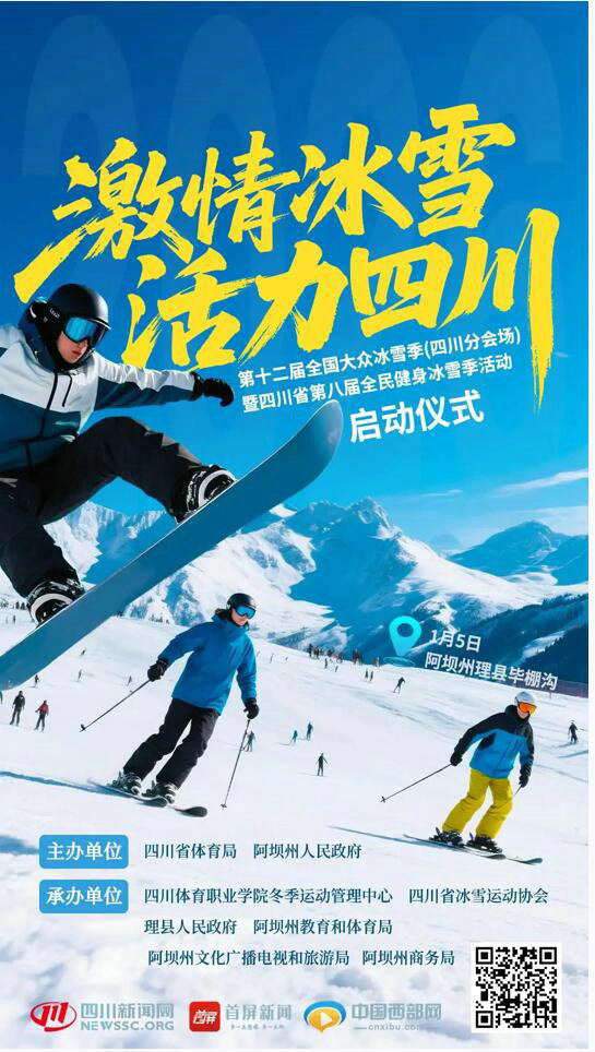 1月5日11:00,以“激情冰雪 活力四川”為主題的第十二屆全國大眾冰雪季(四川分會場)暨四川省第八屆全民健身冰雪季啟動儀式,將在阿壩州理縣畢棚溝滑雪場正式拉開帷幕。關(guān)注四川新聞網(wǎng)網(wǎng)站、微博、微信視頻號以及首屏新聞客戶端直播,和我們一起燃動冰雪!