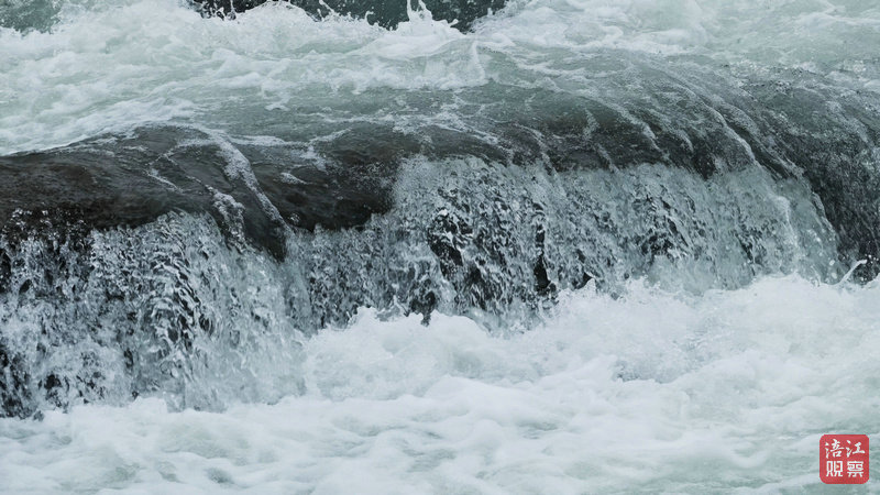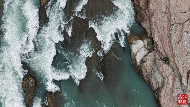 為探尋這份壯美,記者專程奔赴盤龍島,用無人機(jī)拍下這片奇景。高空俯瞰,盤江河床間水流奔涌而下,“雪浪”翻涌不息,恰似春潮席卷而來,震撼不已。