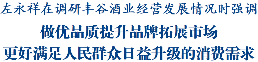 左永祥強(qiáng)調(diào),豐谷酒業(yè)要堅(jiān)持創(chuàng)新驅(qū)動(dòng),在釀造工藝優(yōu)化、產(chǎn)品風(fēng)味提升上持續(xù)精進(jìn),加強(qiáng)全鏈條質(zhì)量管控,圍繞市場(chǎng)需求開(kāi)發(fā)多元化產(chǎn)品,在守正與創(chuàng)新中搶占發(fā)展先機(jī)。要深度挖掘白酒歷史文化底蘊(yùn),講好品牌故事,完善企業(yè)文化表達(dá)體系,加快推進(jìn)酒文旅深度融合發(fā)展,培育新的發(fā)展增長(zhǎng)點(diǎn)。要著眼長(zhǎng)遠(yuǎn)和全局,利用好資本市場(chǎng),科學(xué)有序布局新項(xiàng)目,延伸產(chǎn)業(yè)鏈條,創(chuàng)新?tīng)I(yíng)銷方式,不斷搶占更廣闊的市場(chǎng)空間。要高度重視安全生產(chǎn),緊盯重點(diǎn)部位、重點(diǎn)環(huán)節(jié),全面開(kāi)展風(fēng)險(xiǎn)隱患排查整治,進(jìn)一步筑牢企業(yè)高質(zhì)量發(fā)展的安全底線。