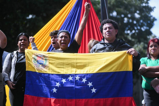 1月3日,在委內(nèi)瑞拉首都加拉加斯,民眾在米拉弗洛雷斯宮附近集會。新華社發(fā)(馬科斯·薩爾加多攝)