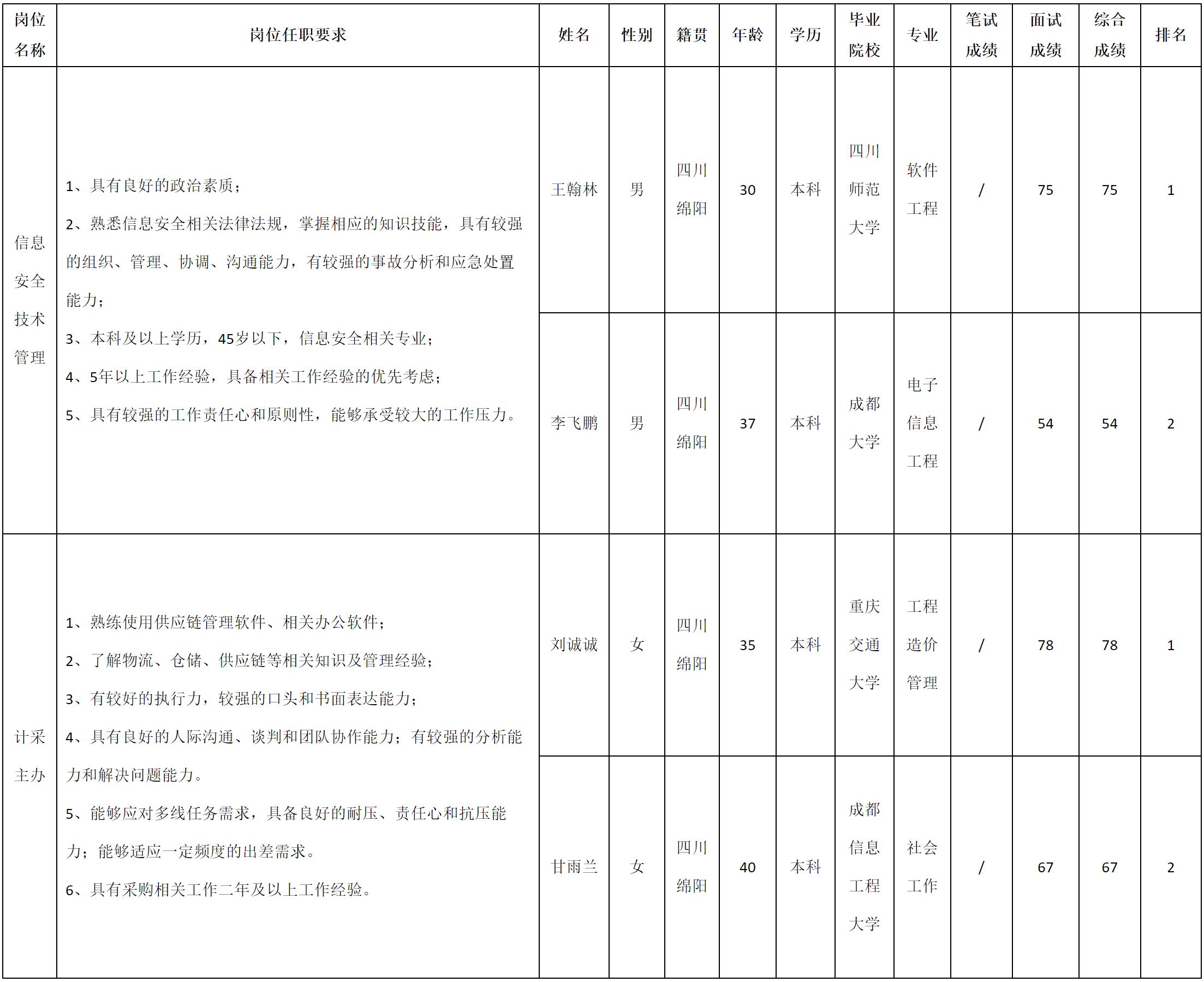 根據(jù)長虹電源公司發(fā)布的招聘公告及招聘相關(guān)規(guī)定,經(jīng)面試等程序,現(xiàn)將面試成績予以公示。