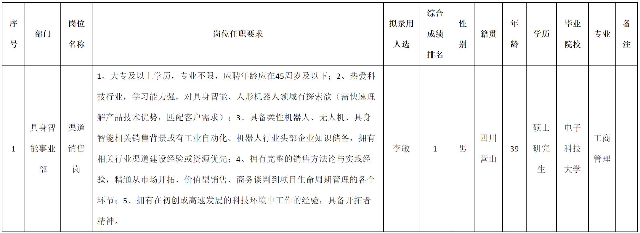 根據(jù)四川九洲投資控股集團有限公司軟件與數(shù)據(jù)智能軍團發(fā)布的招聘公告及招聘相關規(guī)定,經(jīng)測試、考察、體檢等程序,擬錄用李敏同志到四川九洲投資控股集團有限公司軟件與數(shù)據(jù)智能軍團工作,現(xiàn)予以公示,具體情況如下: