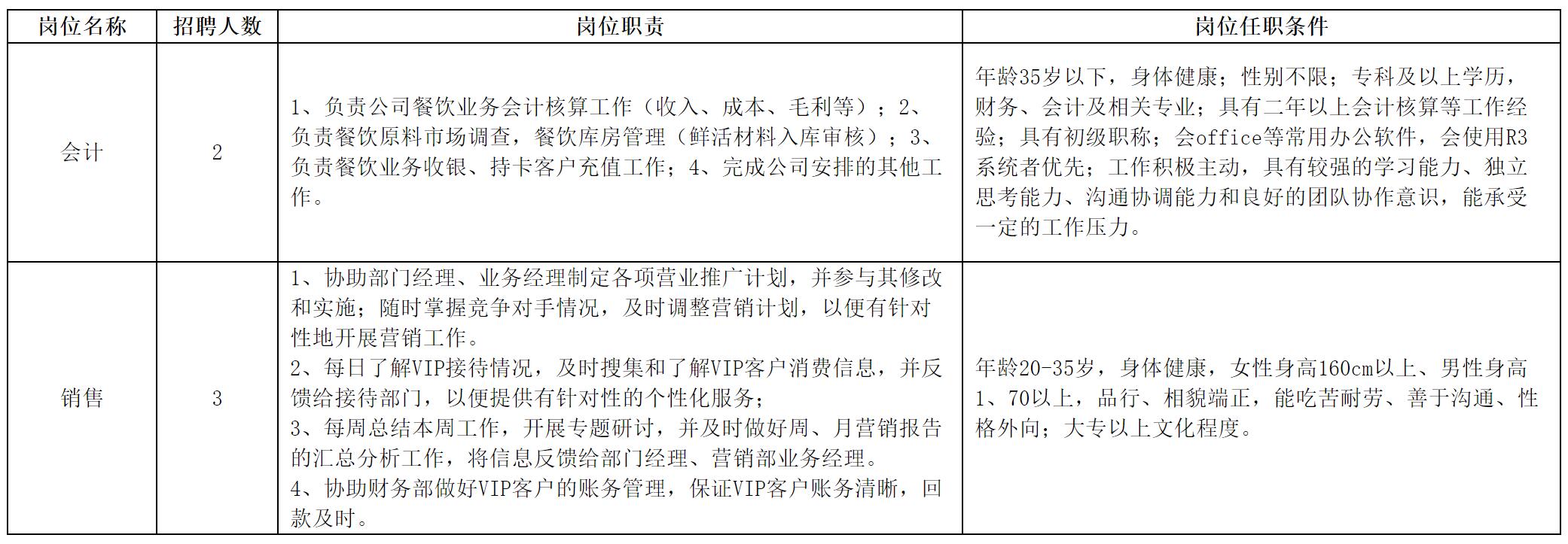 根據(jù)實(shí)際情況安排于長(zhǎng)虹國(guó)際酒店本部或分子公司任職,具體信息如下: