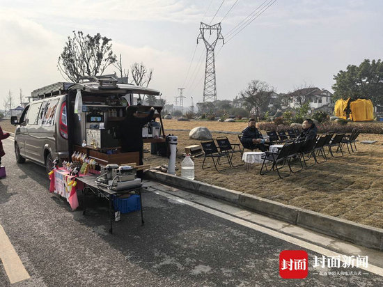 年俗村內,趁著日頭正好擺出來的咖啡車