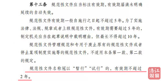記者從綿陽市住建委執(zhí)法監(jiān)督科了解到,《指導(dǎo)意見(試行)》其實已經(jīng)過期。然而,江油市城市管理綜合行政執(zhí)法大隊稱未接到廢止通知,且文件未寫明有效期,故仍在沿用。綿陽市住建委執(zhí)法監(jiān)督科工作人員指出,《綿陽市行政規(guī)范性文件管理實施細(xì)則》第十三條已經(jīng)寫明,“規(guī)范性文件名稱冠以‘暫行’‘試行’的,有效期不超過2年”。
