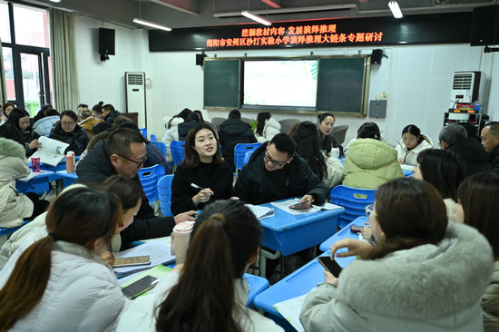 綿陽新聞網(wǎng)訊 為了深挖核心知識(shí)點(diǎn)的教學(xué)價(jià)值,推動(dòng)學(xué)生演繹推理能力進(jìn)階,讓抽象的數(shù)學(xué)公理轉(zhuǎn)化為可落地的教學(xué)實(shí)踐,近日,安州區(qū)沙汀實(shí)驗(yàn)小學(xué)數(shù)學(xué)組開展了以“挖掘教材內(nèi)容 發(fā)展演繹推理”為主題的2025年秋教研活動(dòng)。全體數(shù)學(xué)教師齊聚一堂,圍繞教材梳理、策略優(yōu)化等核心議題各抒己見,在思維碰撞中凝聚教學(xué)共識(shí)。