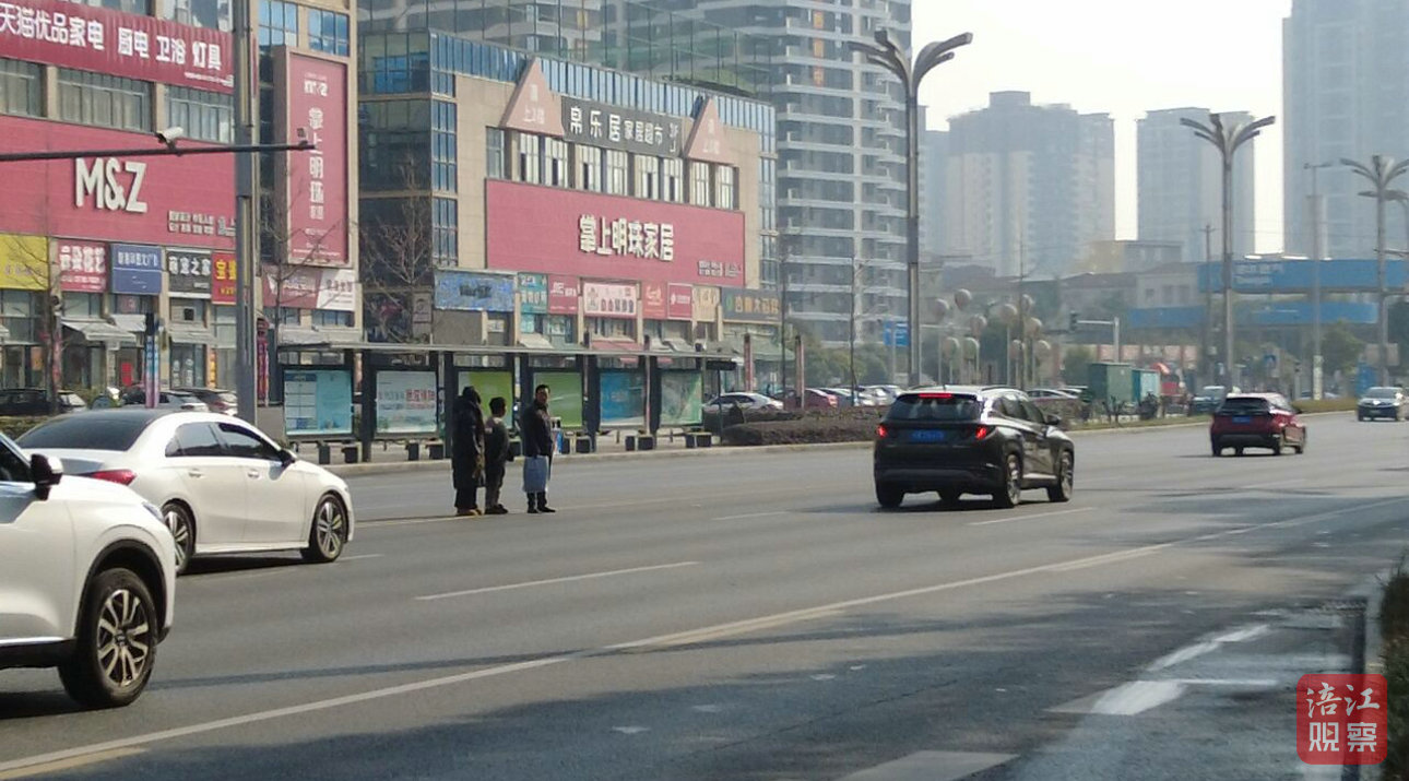 1月8日,記者在綿州大道看到,從城區(qū)方向駛來的公交線路??康?“涪沿村站”,與醫(yī)院直線距離最近。在此下車的乘客中,大多是要到醫(yī)院就醫(yī)的市民,但市民下車后,需沿綿州大道步行至站臺兩端的路口,通過紅綠燈繞行約700米才能到達醫(yī)院。