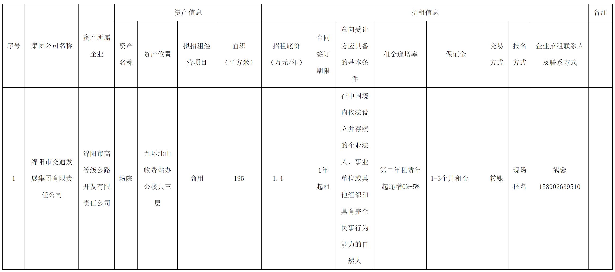 綿陽市高等級公路開發(fā)有限責任公司現(xiàn)有部分空置場院對外公開招租,歡迎有意向的單位、個體工商戶、自然人報名競價,現(xiàn)將相關事宜公告如下: