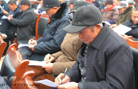 新橋鎮(zhèn)選民填寫人大代表履職測(cè)評(píng)表。