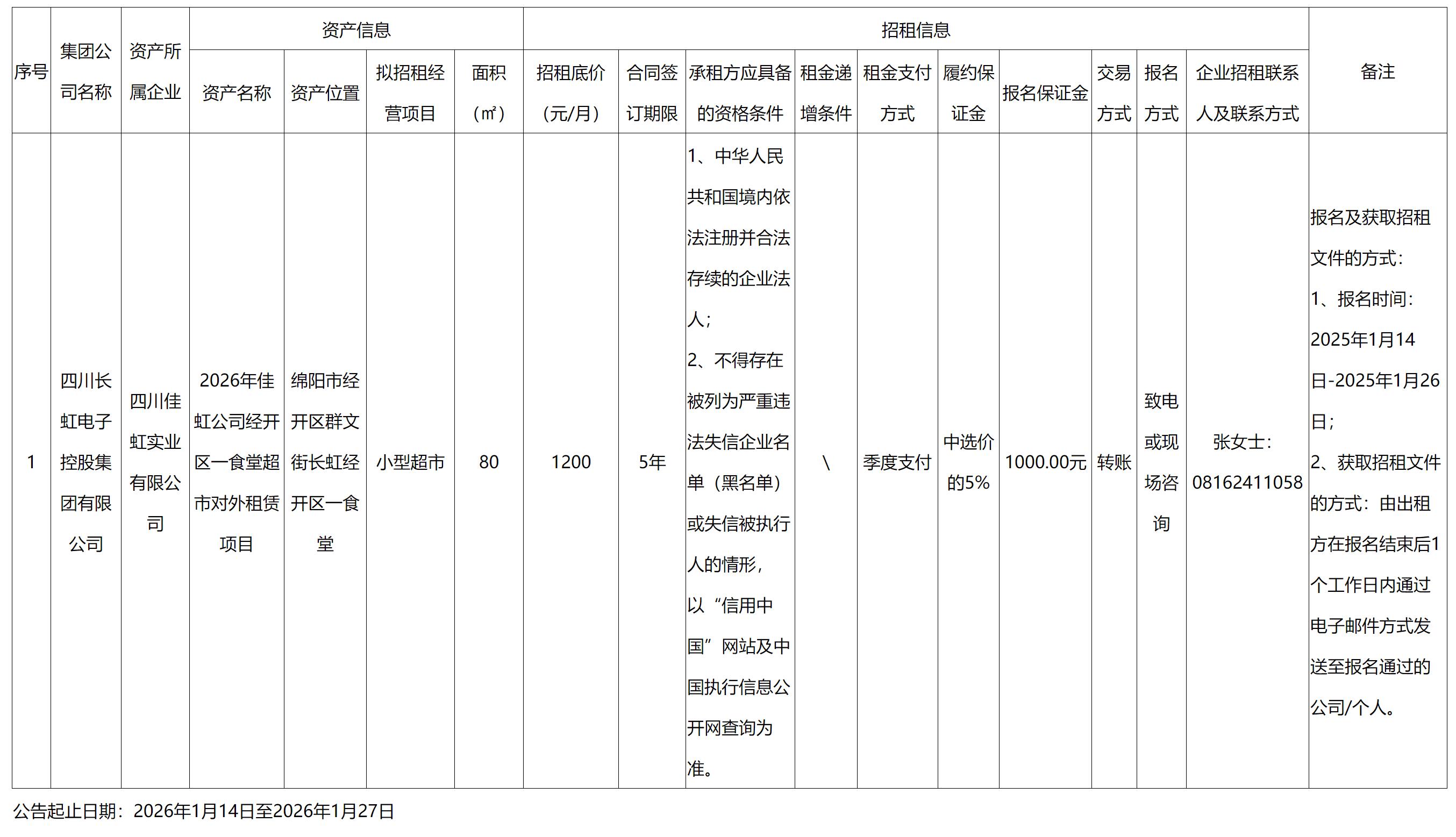 四川佳虹實(shí)業(yè)有限公司資產(chǎn)出租公告