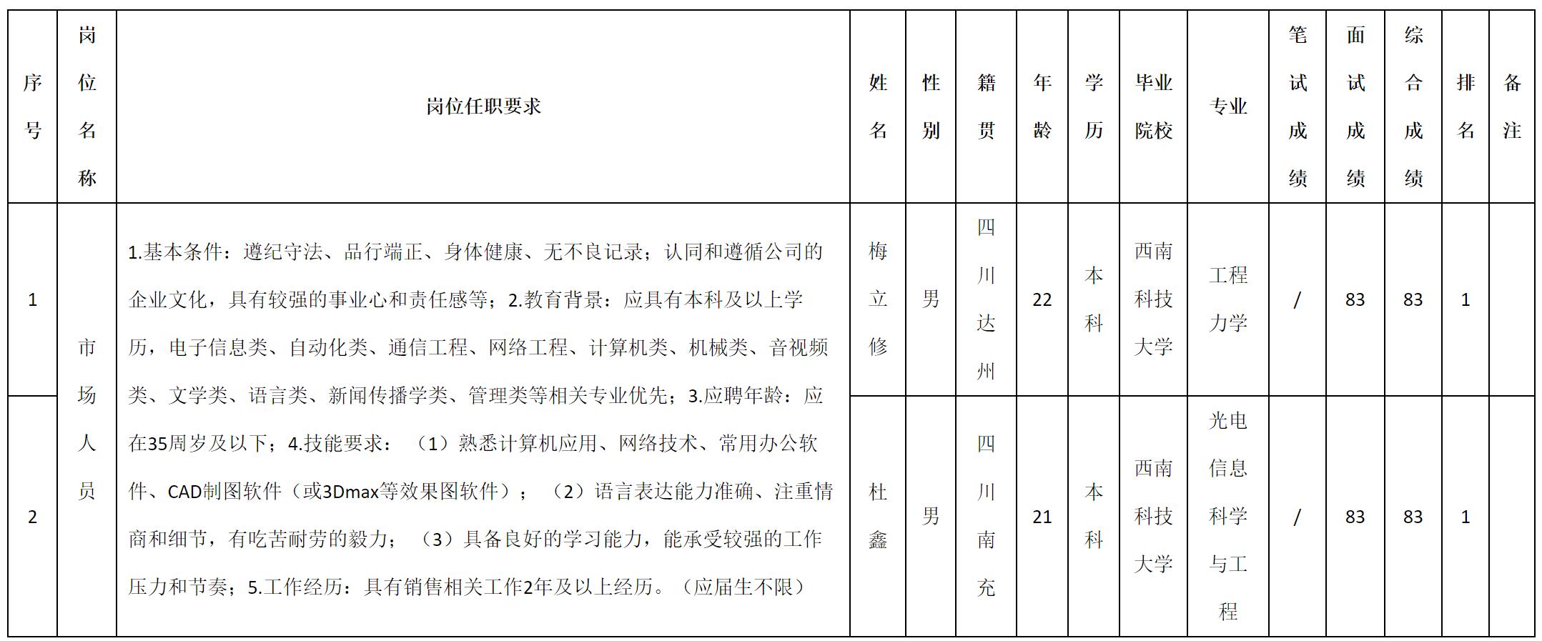 根據(jù)四川湖山電器股份有限公司發(fā)布的招聘公告及招聘相關(guān)規(guī)定,現(xiàn)將測(cè)試成績(jī)予以公示。