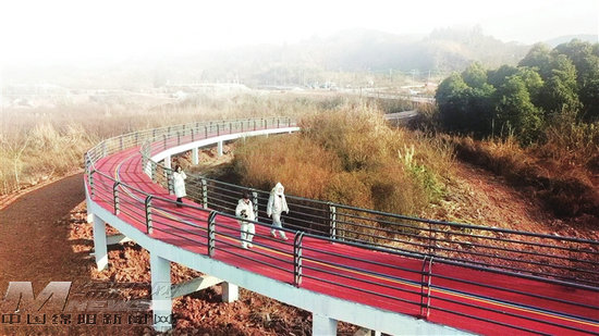 冬日暖陽灑遍仙海湖,大壩至七曲村路段間,一條嶄新的鄉(xiāng)村綠道如絲帶般舒展。1月15日,記者沿綠道前行,只見道路或與公路并行、或穿老橋蜿蜒、或借新修棧道穿梭山林,瀝青步道旁溪水潺潺、蘆葦搖曳、飛鳥蹁躚,公路車流、駐足游客與嬉戲孩童相映成趣,勾勒出“人在景中走,如在畫中游”的生態(tài)圖景。