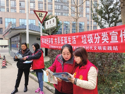 志愿者向居民宣講垃圾分類(lèi)知識(shí)。