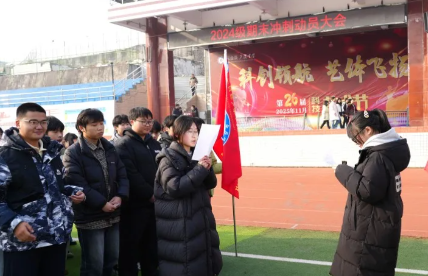 綿陽新聞網(wǎng)訊 1月12日上午,三臺縣蘆溪中學高二年級全體師生齊聚操場,隆重舉行了以“卓行礪劍戰(zhàn)期末,青春誓言鑄輝煌”為主題的期末沖刺動員大會。