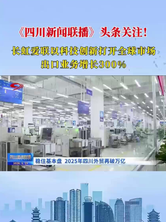 《四川新聞聯播》頭條關注!長虹愛聯以科技創(chuàng)新打開全球市場 出口業(yè)務增長300%