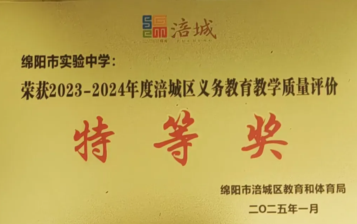 綿陽新聞網(wǎng)訊 近日,綿陽市教育和體育局發(fā)布2024-2025學(xué)年義務(wù)教育質(zhì)量評(píng)價(jià)結(jié)果通報(bào),綿陽市實(shí)驗(yàn)中學(xué)(綿陽七中)憑借卓越的辦學(xué)品質(zhì)與綜合育人成效,榮獲綿陽市初中階段義務(wù)教育質(zhì)量評(píng)價(jià)“A組表現(xiàn)特別突出學(xué)校”榮譽(yù)稱號(hào)(初中最高獎(jiǎng)項(xiàng))。