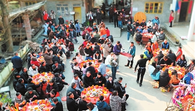 平武刨湯宴熱鬧開席,吸引游客體驗鄉(xiāng)村年味。記者 任露瀟 攝