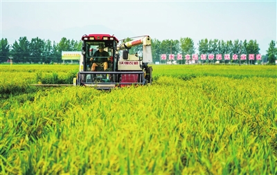 安州區(qū)水稻制種現(xiàn)代農(nóng)業(yè)園區(qū)機(jī)器收割。