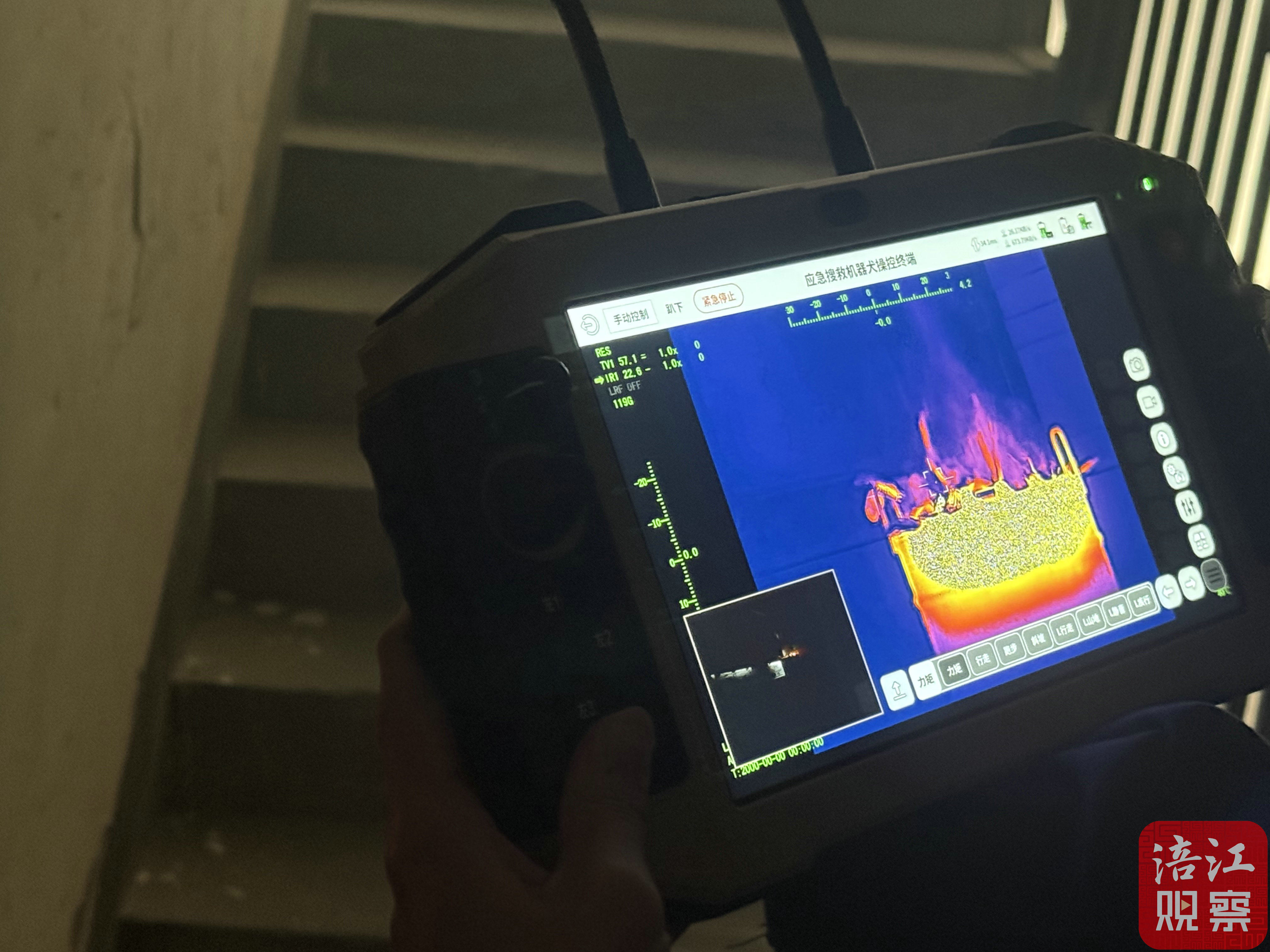 在偵察探測方面,小家伙也堪稱“智能偵察兵”。其搭載的氣體傳感器更是“化學探測器”,能精準預警6種危險氣體并迅速回傳數(shù)據(jù),可兼顧火情偵察、危化品泄漏排查和勤務保障等多重任務;配備的“鷹眼全景+熱成像”雙視域系統(tǒng)所具備的穿透煙霧、追蹤熱源能力,則如同裝上了“透視眼”,不僅能將火場的高清現(xiàn)場畫面實時傳輸回指揮中心,還能夠在濃煙彌漫甚至是全黑的火場中,精確獲取人員與環(huán)境的溫度分布,快速定位火源與被困人員,為后續(xù)的救援行動指明方向。此外,機器人還支持雙向通話功能,不僅可以在一定程度上與被困人員溝通,穩(wěn)定他們的情緒,還能讓救援人員更好地了解現(xiàn)場情況,為救援行動提供更準確的信息。