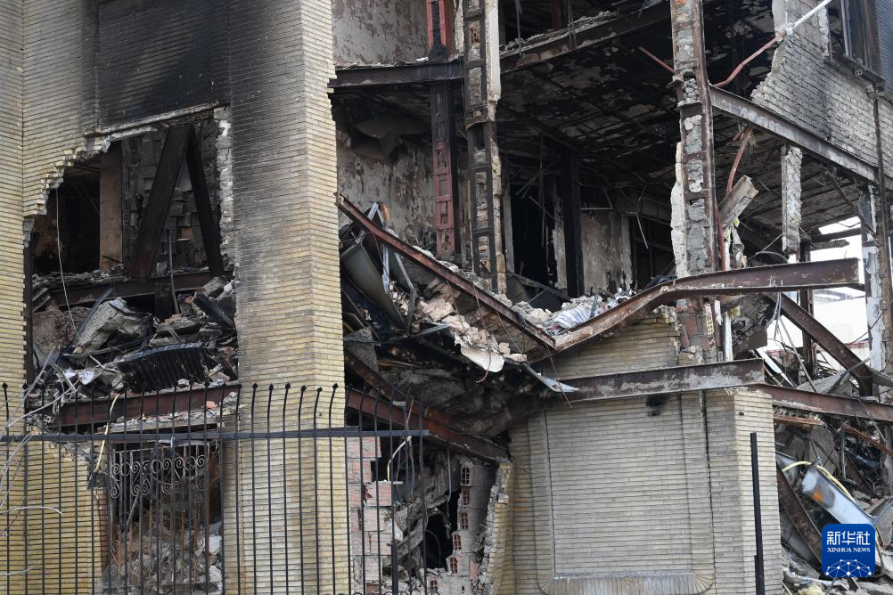 這是1月21日在伊朗首都德黑蘭拍攝的在近期騷亂中受損的一處稅務(wù)局建筑。新華社記者 沙達提 攝