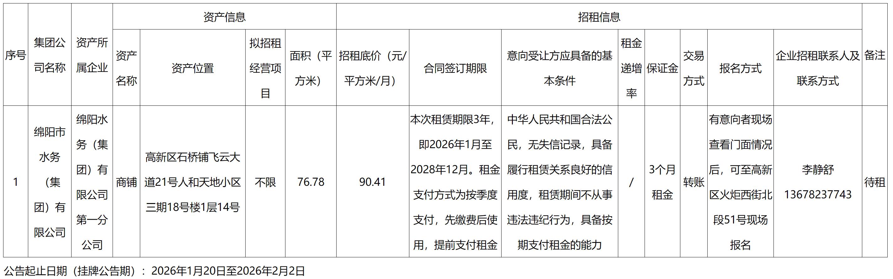 綿陽市水務(集團)有限公司資產出租公告