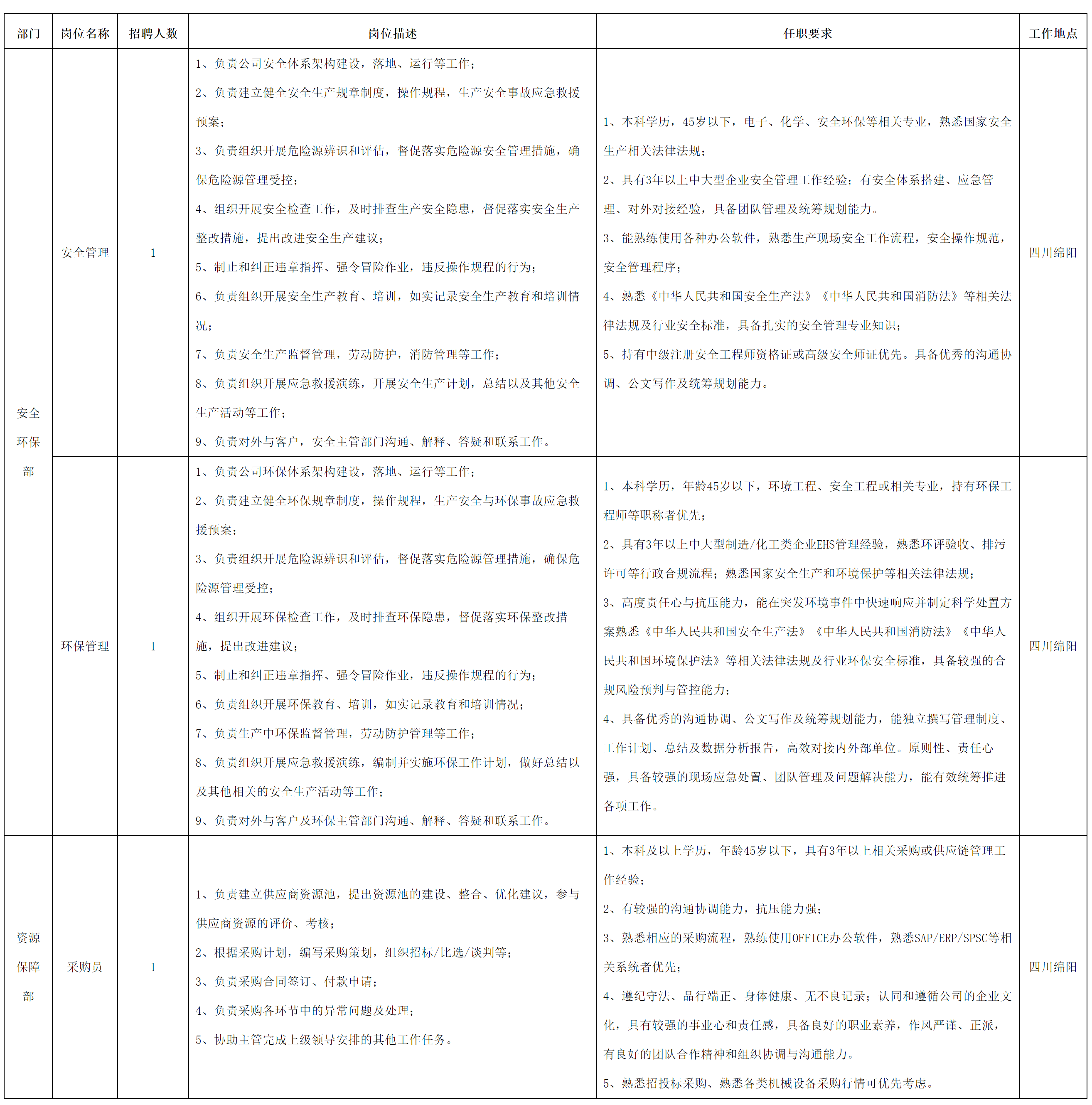現(xiàn)因公司經(jīng)營發(fā)展需要,現(xiàn)面向社會誠聘安全管理等崗位人員,具體崗位招聘信息公告如下: