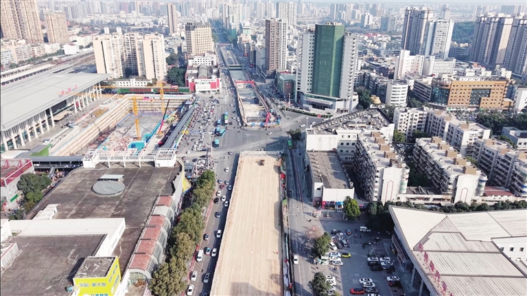 綿陽火車站站前廣場及周邊配套設施建設項目施工現(xiàn)場。 記者 李玉佳 攝