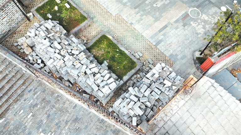 這些廢磚從何而來?據(jù)居民反映,磚塊并非無主之物。小區(qū)旁的南城門墻屬明代遺址,2022年,為阻止人員進入尚未開放的遺址區(qū)域,平武縣相關(guān)部門曾在此砌筑了一段長20余米,高3米的擋墻。2023年,考慮到南城門墻的美觀度,該擋墻被整體拆除,拆下來的磚塊便被堆放在小區(qū)綠化帶內(nèi),自此無人問津。