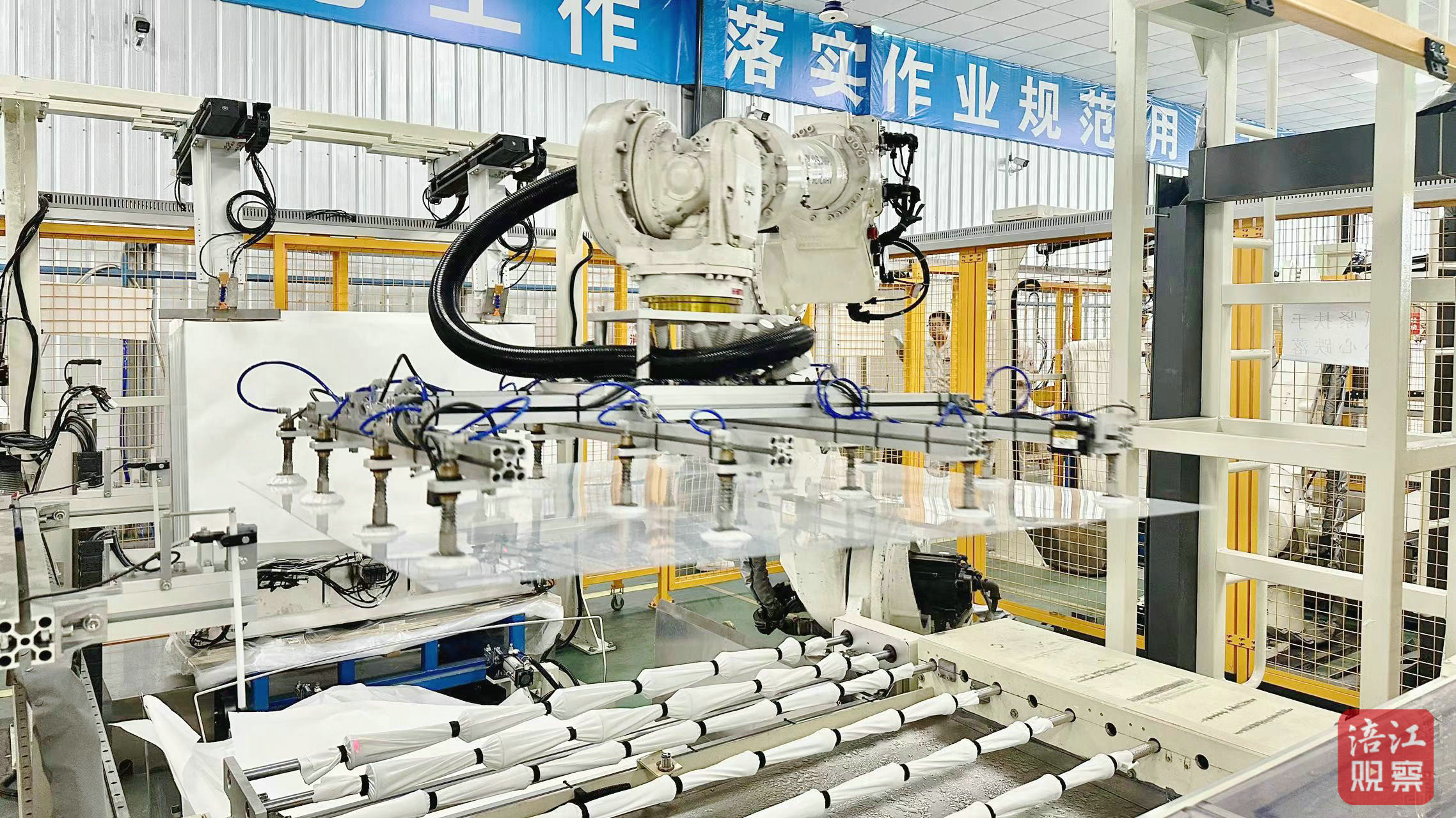 “現(xiàn)在有了機(jī)械手立堆系統(tǒng),我們更省心、更放心了。”1月26日,走進(jìn)四川虹科創(chuàng)新科技有限公司(以下簡稱“虹科創(chuàng)新”)王者熊貓玻璃P2生產(chǎn)線,8臺機(jī)械手如靈活的“鐵臂”般高速運(yùn)轉(zhuǎn)——伸展、抓取、翻轉(zhuǎn)、碼放,一系列動作精準(zhǔn)利落、一氣呵成。